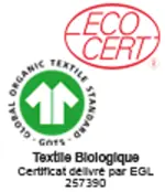 - Fibres de coton naturelles biologiques certifiées GOTS