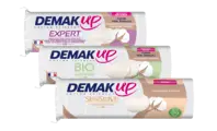 Het Demak'Up Bio-assortiment respecteert de huid én het milieu met zijn 100% biologische en ongebleekte katoenvezels!
